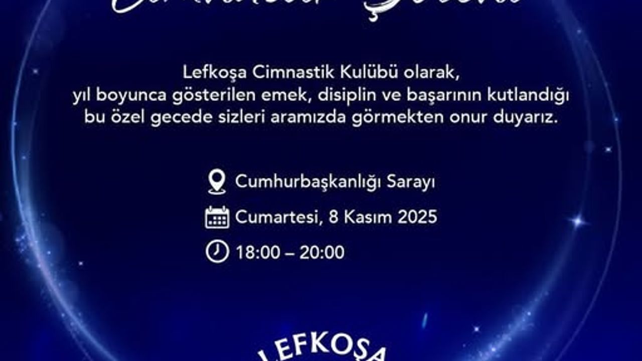 Cumhurbaşkanlığı Sarayı’nda düzenlenecek olan Lefkoşa Cimnastik Kulübü’nün düzenleyeceği cimnastik şöleni 8 Kasım Cumartesi günü 18:00 – 20:00 saatleri arasında gerçekleştirilecek.