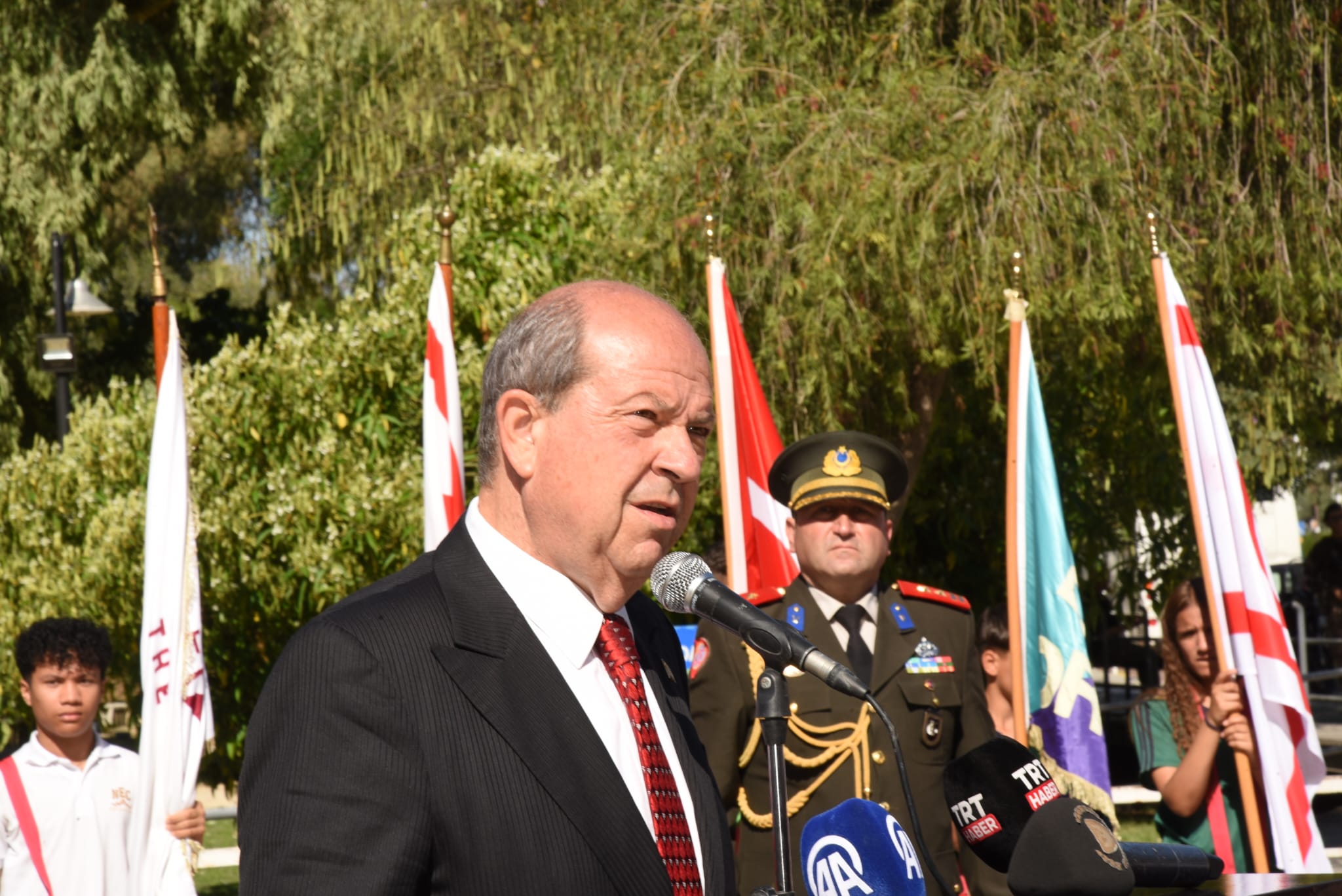 Törene Cumhurbaşkanı Ersin Tatar, Cumhuriyet Meclisi Başkanı Ziya Öztürkler, Başbakan Ünal Üstel, Yüksek Mahkeme Başkanı Bertan Özerdağ, İkinci Cumhurbaşkanı Mehmet Ali Talat, Türkiye Cumhuriyeti’nin Lefkoşa Büyükelçisi Ali Murat Başçeri, Kıbrıs Türk Barış Kuvvetleri Komutanı Tümgeneral Sebahattin Kılınç, Güvenlik Kuvvetleri Komutanı Tümgeneral İlker Görgülü, ana muhalefet Cumhuriyetçi Türk Partisi Genel Başkanı Tufan Erhürman, bazı bakanlar, milletvekilleri, bürokratlar, kurum, kuruluş, dernek temsilcileri ve askeri erkan katıldı.