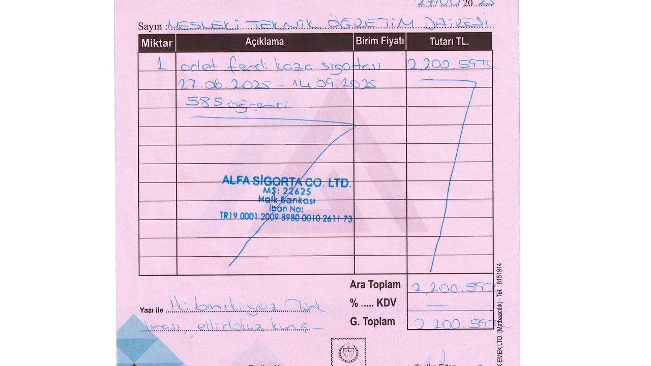 Merkezi İhale Komisyonu’nun açtığı ihale kapsamında meslek liselerinde okuyan 585 öğrencinin staj dönemlerini kapsayan ferdi kaza sigortalaları için, ihaleyi kazanan Alfa Sigorta, bakanlığa bu poliçe kapsamında toplam 2 bin 200 TL ücret faturalandırdı.