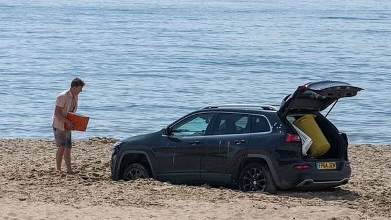 Siyah renkli jipini sahildeki yürüyüş yolundan kuma süren Alex, aracın yumuşak kuma saplanmasıyla zor anlar yaşadı. Dört çeker araç, kumun içine gömüldü ve hareket edemez bir hale geldi...