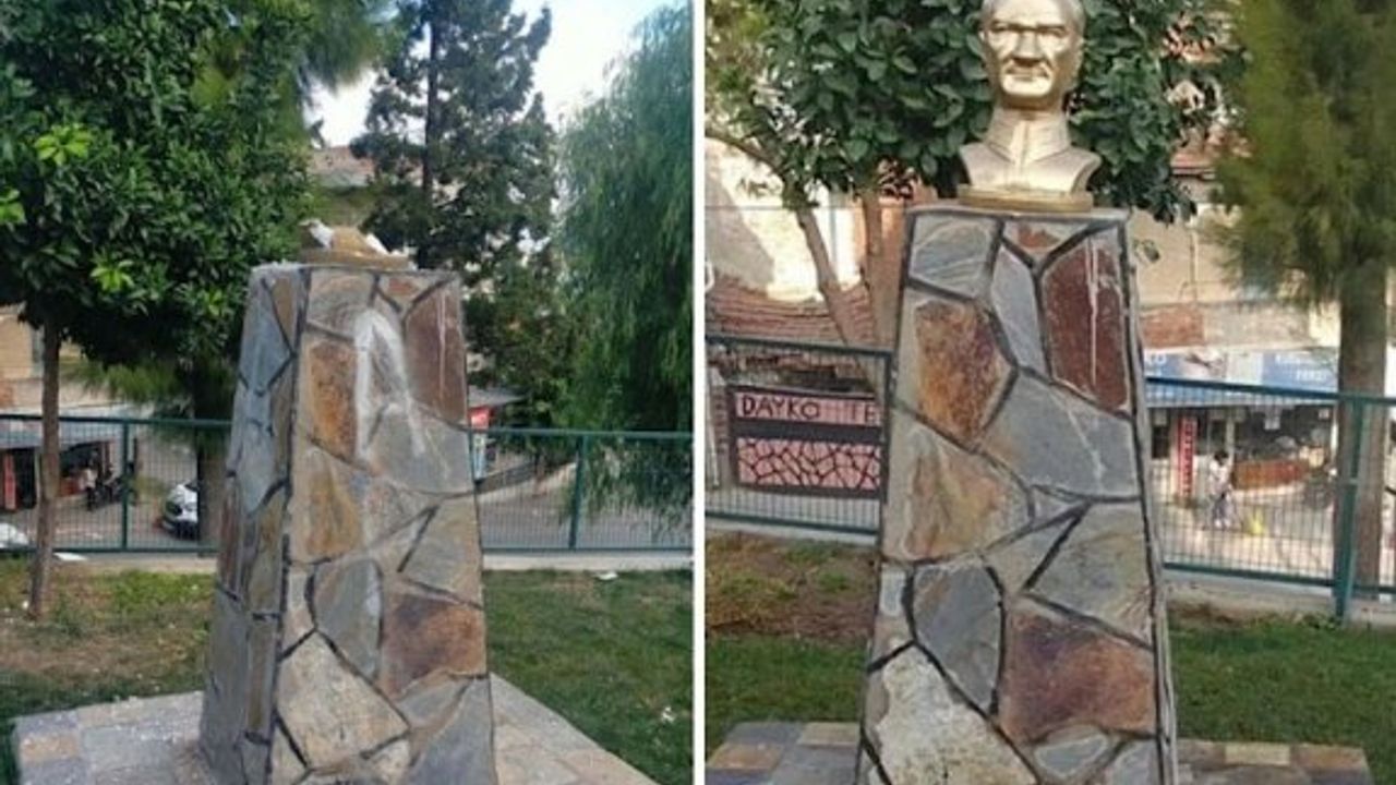 Türkiye Cumhuriyeti’nin kurucusu Mustafa Kemal Atatürk’ün büstüne bu kez de İzmir’de saldırıldı. İzmir’in Konak ilçesinde Ferahlı Mahallesi’nde geçen yıl tamamen yenilenerek halkın hizmetine açtıkları Ferahlı Parkı’nda bulunan Atatürk büstüne saldırıldı.