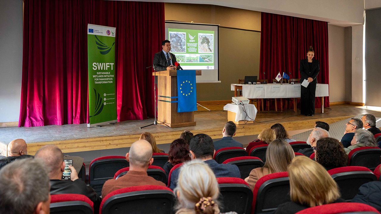 Moderatörlüğünü Proje Müdürü Münise Alibeyoğlu’nun yaptığı tanıtım etkinliğinde, MAKAMER Yönetim Kurulu Üyesi ve Çevre Komitesi Sorumlusu Uzman Biyolog Pelin Üretici projenin sunumunu gerçekleştirdi. Etkinlikte MAKAMER Genel Sekreteri Betül Akilhoca, AB Altyapı, Çevre, Sivil Toplum ve Eğitim Sektör Yöneticisi Michel Vedrenne, Doğu Akdeniz Üniversitesi Rektörü Prof. Dr. Hasan Kılıç ve Belediye Başkanı Dr. Süleyman Uluçay da konuşma yaptı. Etkinlik kapsamında gerçekleştirilen ‘Kentsel Hakların Ekolojik Boyutu: Ayluga Sulak Alanı Perspektifi’ başlıklı panelde ise Prof. Dr. Naciye Doratlı, Doç. Dr. Müge Rıza ve Yrd. Doç. Dr. Burak Ali Çiçek, Ayluga’nın kentle kurduğu ilişkiyi planlama, koruma ve biyolojik çeşitlilik eksenlerinde çok disiplinli bir yaklaşımla ele aldı. Proje Müdürü Münise Alibeyoğlu, açılış konuşmasında sulak alanların tek bir kurumun ya da tek bir disiplinin konusu olmadığını; bilimin, yerel yönetimin, sivil toplumun, eğitimin ve gündelik yaşamın kesişiminde yer alan ortak bir kamusal değer olduğunu vurguladı. Alibeyoğlu, Mart 2027’ye kadar sürecek SWIFT projesinin bu anlayışla bütüncül bir yaklaşım benimsediğini belirtirken, projenin hayata geçmesini sağlayan AB Mali Yardım Programı’na teşekkür etti. MAKAMER adına konuşan Betül Akilhoca ise SWIFT projesinin, derneğin Mağusa’da kadınların güçlenmesine yönelik yürüttüğü hizmet ve çalışmaların çevre odağındaki uzantısı olduğunu belirtti. Uzman Biyolog Pelin Üretici, projenin kapsamı ve uygulama yaklaşımına ilişkin yaptığı sunumda Ayluga Sulak Alanı’na yönelik bilimsel araştırmalar, eğitim ve kapasite geliştirme programları, farkındalık ve savunuculuk çalışmaları, çevre dostu ürün tasarımı ve markalaşma başlıklarında kapsamlı faaliyetler yürütüleceğini aktardı. Üretici ayrıca, proje kapsamında ‘Ayluga Sulak Alan Durum Raporu’nun hazırlanacağını, yerel düzeyde koordinasyon ve iş birliğinin güçlendirileceğini ve kentsel sulak alanların yalnızca korunacak ekolojik alanlar değil, aynı zamanda kentli hakkı ile ilişkili kamusal nitelikli mekânlar olarak ele alınacağını vurguladı.