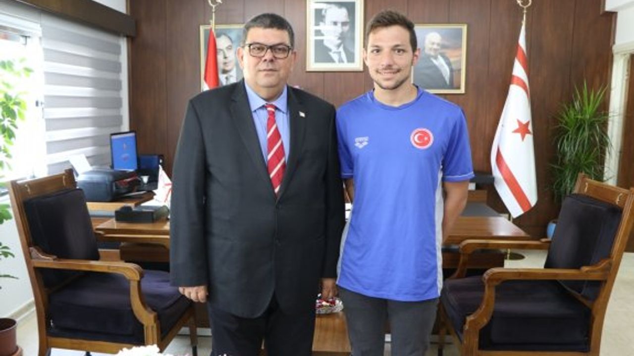 Maliye Bakanı Özdemir Berova, uluslararası yarışlarda başarılar elde eden Kıbrıslı Türk milli yüzücü Doğukan Ulaç’ı kabul etti.