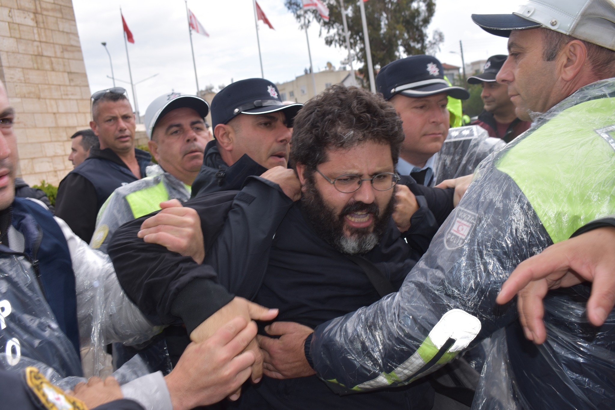 Türkiye Cumhuriyeti Cumhurbaşkanı Recep Tayyip Erdoğan’ın adaya gelişinde Lefkoşa’da, Sivil Savunma Çemberi’nde toplanan bir grup eylemciye polis müdahalede bulundu.
