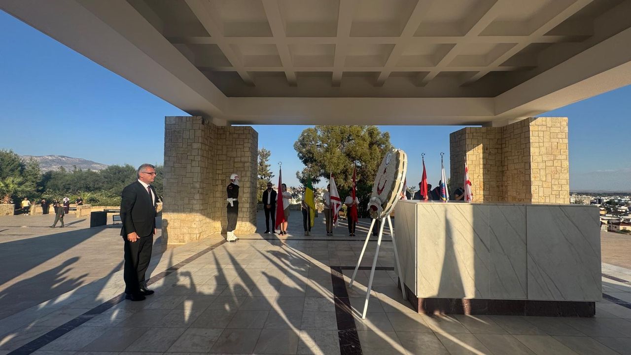 Anıta çelenk sunulmasıyla başlayan törende, saygı duruşu ve İstiklâl Marşı eşliğinde bayrakların göndere çekilmesinin ardından Cumhurbaşkanı Tufan Erhürman Anıt Özel Defteri imzaladı.