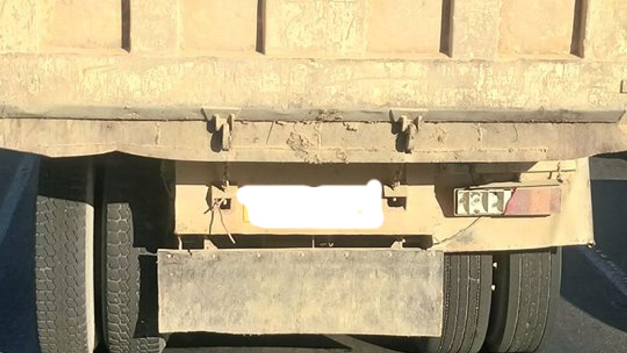 Fotoğrafta da görüldüğü gibi yüklü bir şekilde ilerlemekte olan kamyonun ticari bir iş mi yoksa kendi işini mi yapan bir kişiye ait olduğunu bilmediğini söyleyen vatandaşımız, ancak kamyonun ne sol arka çamurluğunun ne de arka sinyal lambalarının bulunduğunu sağ arka çamurluğunun yarım yamalak olduğunu sinyal lambalarının ise yarısının kırık olduğunu belirtti.