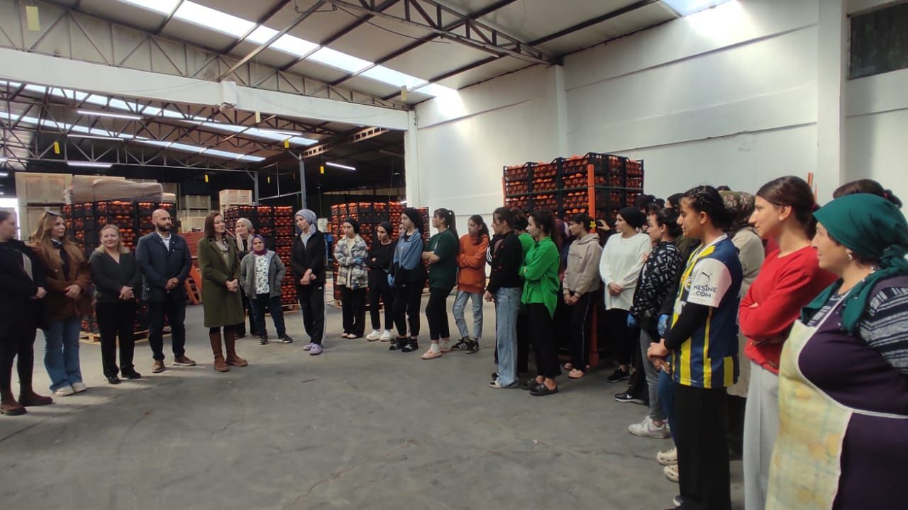Açıklamaya göre, ağırlıkla Mardin, Batman, Adıyaman, Diyarbakır ve Hakkari bölgelerinden gelen kadın işçiler, CTP Kadın Örgütü'ne hazırladıkları hediyeler için teşekkür etti. Heyet, bölgedeki fabrikaların yöneticileriyle de görüşerek narenciyenin son durumuyla ilgili bilgi aldı.
