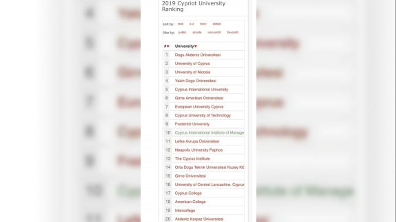 Söz konusu sıralamada Üniversitelerin bizzat kendileri tarafından sunulan verilerden ziyade, bağımsız web bilgi kaynakları tarafından sağlanan geçerli, tarafsız ve etki altında kalmayan web ölçütleri kullanılmış ve en iyi Kıbrıs üniversitelerinin akademik olmayan bir lig tablosu sağlanması amaçlanmıştır. Bu bağlamda uniRank kriterleri doğrultusunda ve kullanılan ölçütler içerisindeki 2019 Kıbrıs Üniversiteler Sıralaması’nda DAÜ lig birinciliğine layık görülmüştür. Listede birinci sıradaki DAÜ’nün ardından Güney Kıbrıs’tan University of Cyprus ikinci, University of Nicosia ise üçüncü olarak yer almıştır.