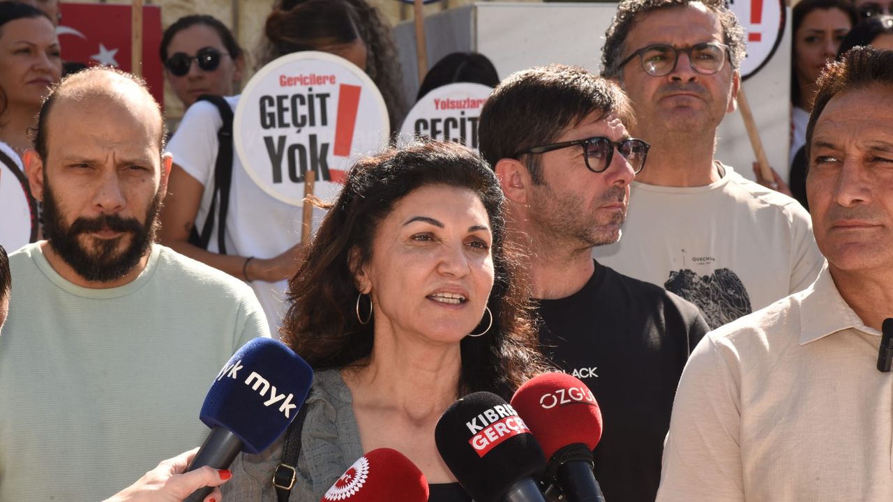 Eylemde, “İrademize sahip çıkıyoruz. Dayatmalara, yoksullaştırmaya, gericiliğe geçit yok”, “Kız çocuklarını istismar eden siyasal İslam’a izin vermeyeceğiz” yazılı pankartları açıldı; “Kıbrıs laiktir, laik kalacak”, “Geçit yok”, “Etişir”, “Tayfaldık” yazılı dövizler taşındı.