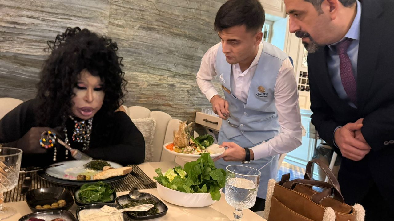 Restoranda sunulan lezzetlerden ve hizmet kalitesinden oldukça memnun kalan sanatçı, restoranın şefini ve işletmecisini masasına davet etti.