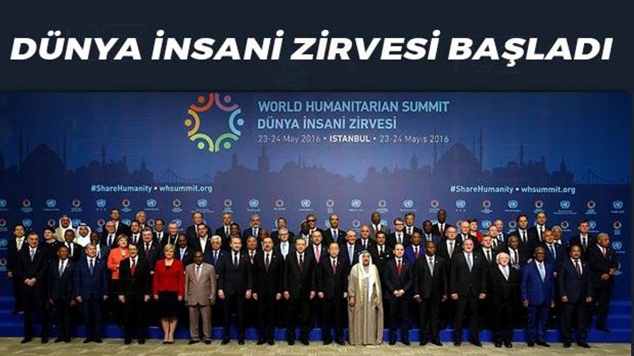 Birleşmiş Milletler'in (BM) düzenlediği Dünya İnsani Zirvesi, Türkiye'nin ev sahipliğinde İstanbul Kongre Merkezi’ne başladı. TC Cumhurbaşkanı Recep Tayyip Erdoğan ve diğer ülkelerin liderleri, zirvenin ilk programı olan kahvaltılı liderler oturumunda buluştu. Basına kapalı gerçekleştirilen oturumun ardından Cumhurbaşkanı Erdoğan ile konuk liderler ve hükümet temsilcileri aile fotoğrafı çektirdi. Daha sonra düzenlenen açılış oturumunda Erdoğan konuşma yaptı.