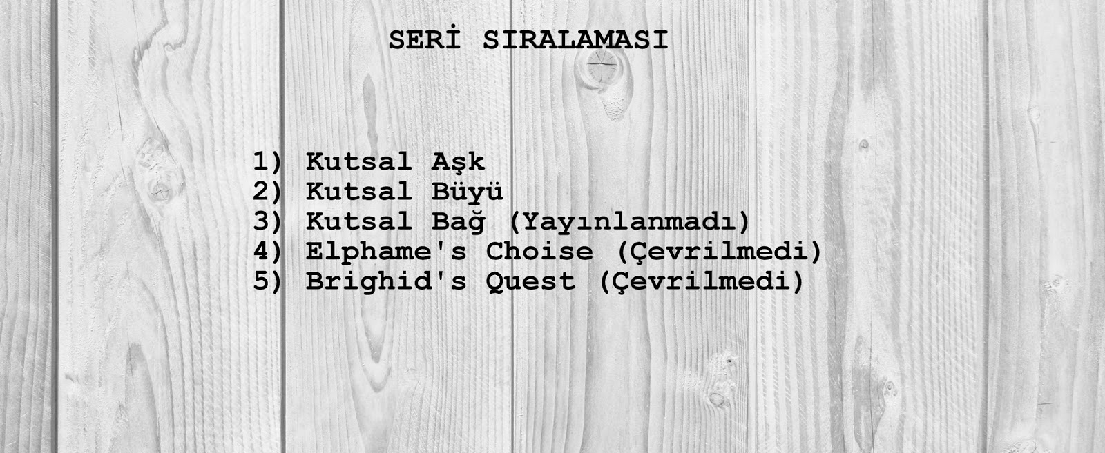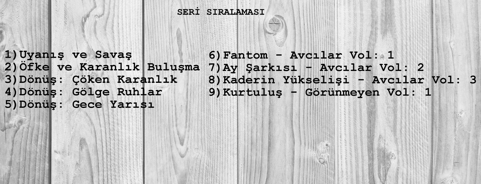 Bu arada hemen belirtmek isterim listede elbette eksikler olacaktır. Çok tanınmış kimi serileri bilerek liste dışı bıraktım. Sonuçta Amerikayı yeniden keşfetmenin alemi yok. Alacakaranlık serisi, Harry Potter serisi, Açlık Oyunları serisi gibi artık fantastik kategorisinin kült eserlerini zaten hepimiz biliyoruz. Şimdiden herkese keyifli okumalar diliyorum.