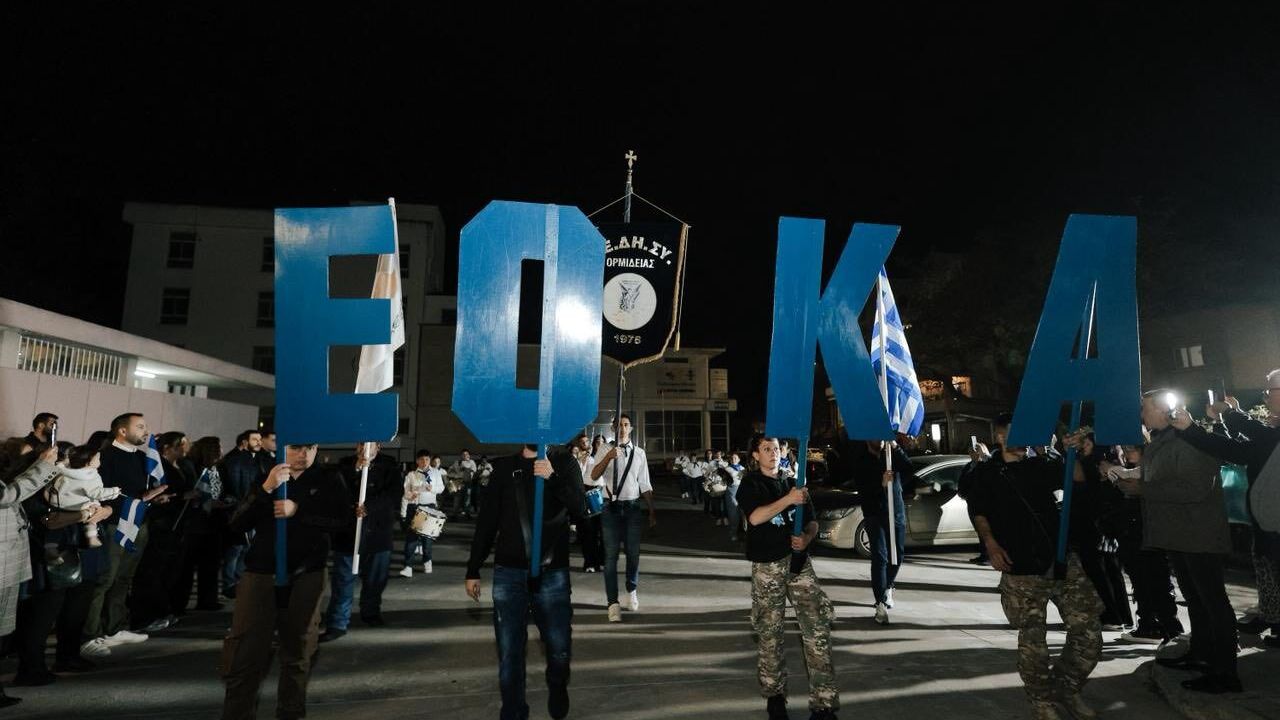 Güney Kıbrıs’ta terör örgütü EOKA’nın kuruluş yıldönümü etkinlikleri çerçevesinde düzenlenen yürüyüşte; ‘Kıbrıs Yunandır’ sloganları atıldı, Kıbrıs’ın Yunanistan’a ait olduğu iddia edilen bayraklar taşındı.