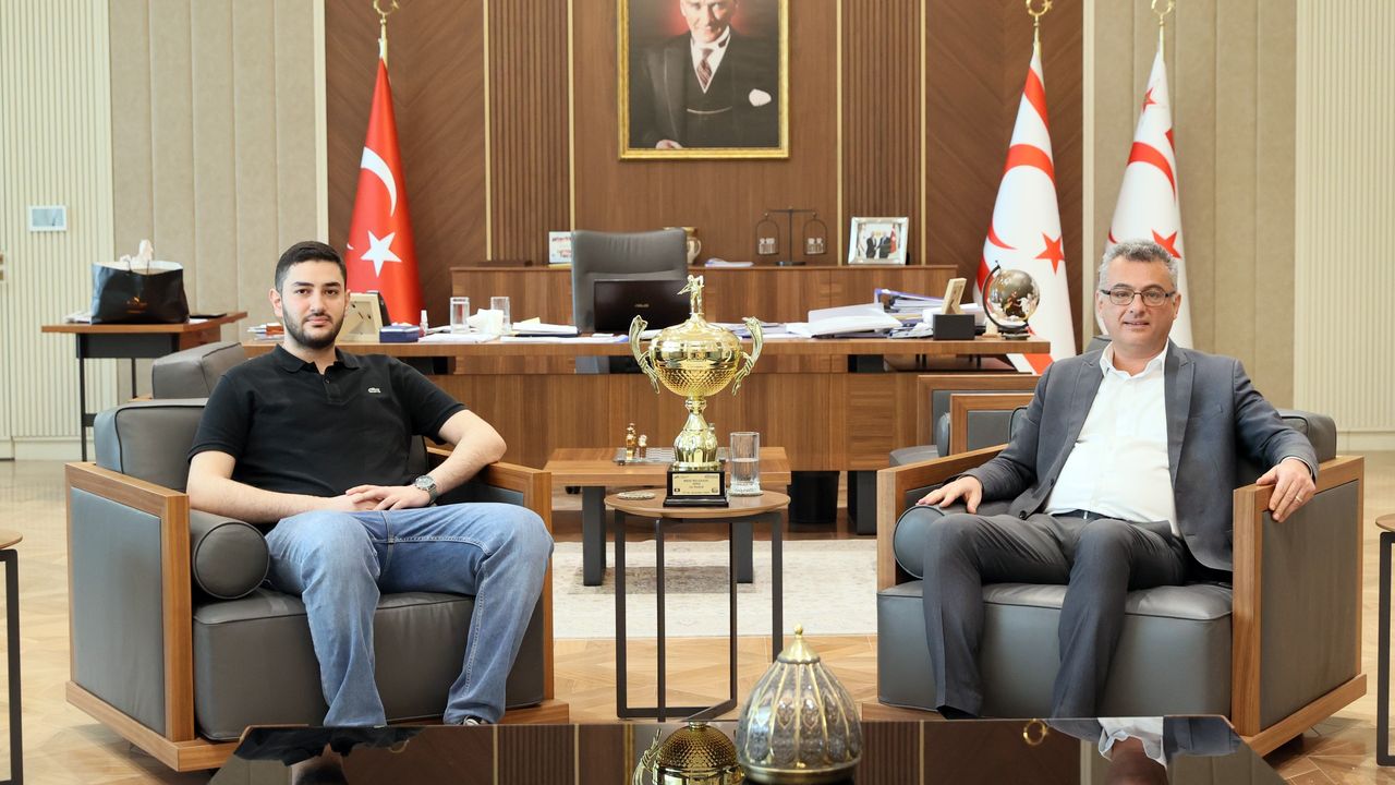 Cumhurbaşkanı Tufan Erhürman, milli bilardocu Mustafa Alnar’ı kabul etti.