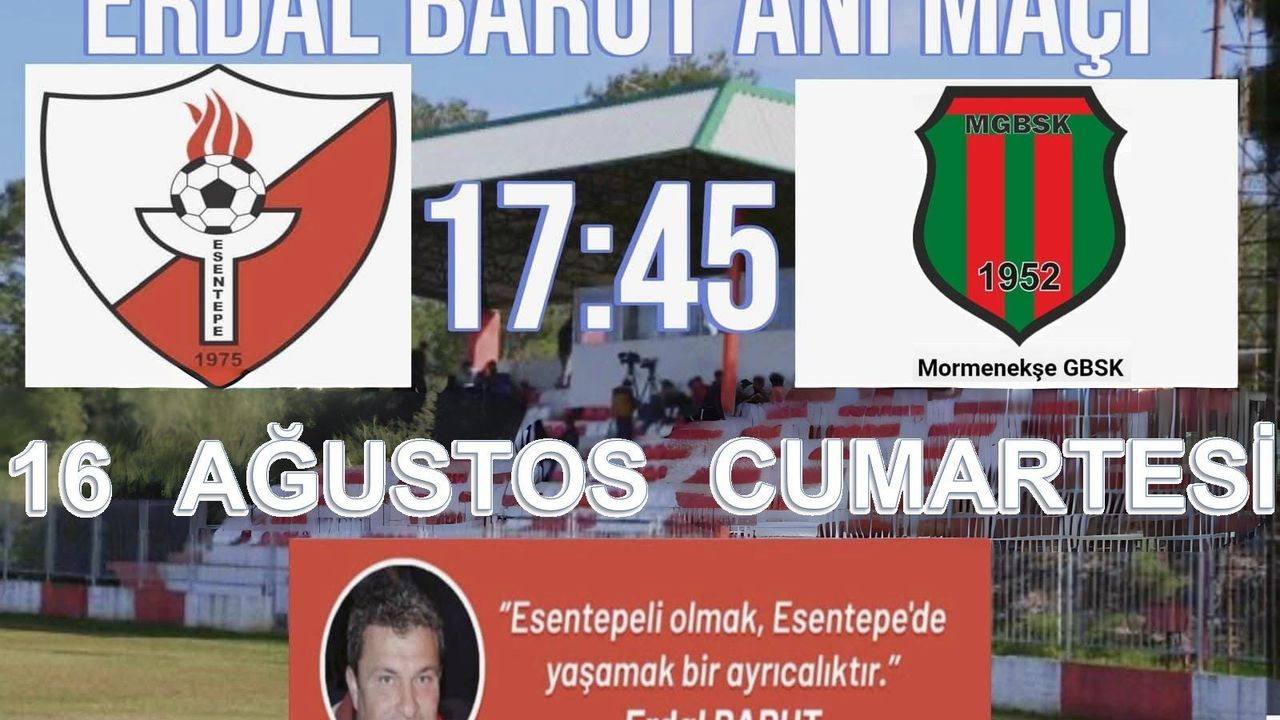 Esentepe Spor Kulübü’nden verilen bilgiye göre, 12. Erdal Barut Anı Maçı Cumartesi günü saat 17.45'te Mormenekşe ile Esentepe Erdal Barut Stadı’nda yapılacak.