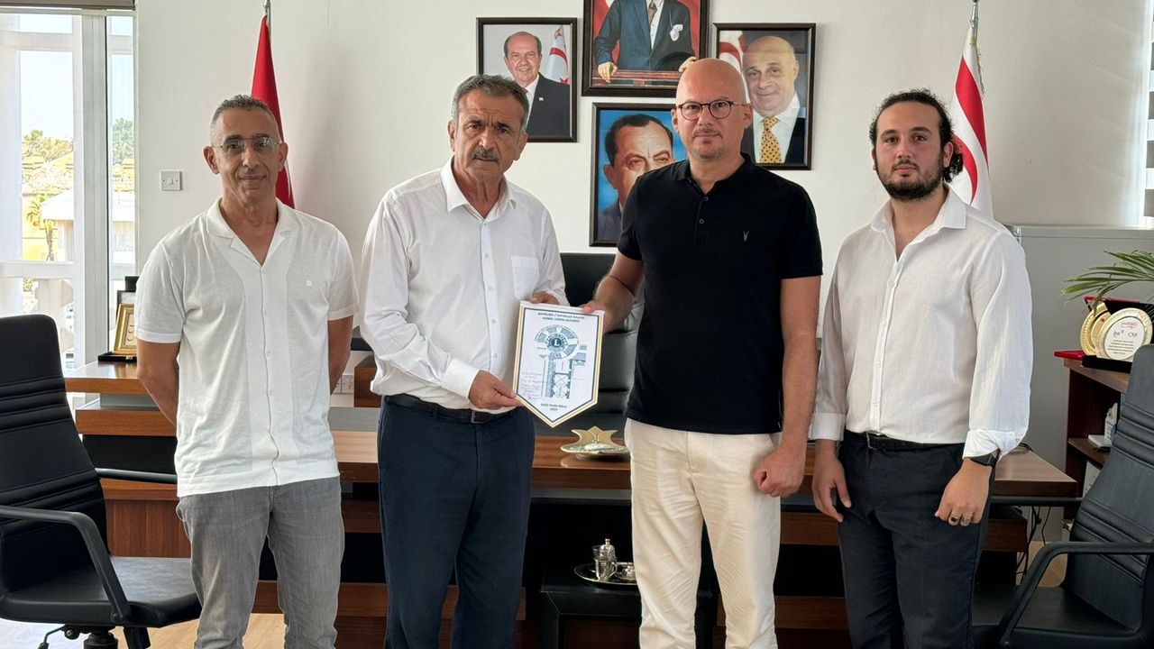 Gazimağusa Özel Eğitim ve İş Eğitim Merkezi Sorumlusu Emirali Evcimen, Citadel Kale Lions Kulübü Başkanı Prof. Dr. Özgür Dinçyürek ve Kulüp Sekreteri ile Proje Tasarımcısı Yusuf Özküçük, Gazimağusa Belediye Başkanı Süleyman Uluçay’ı makamında ziyaret etti.