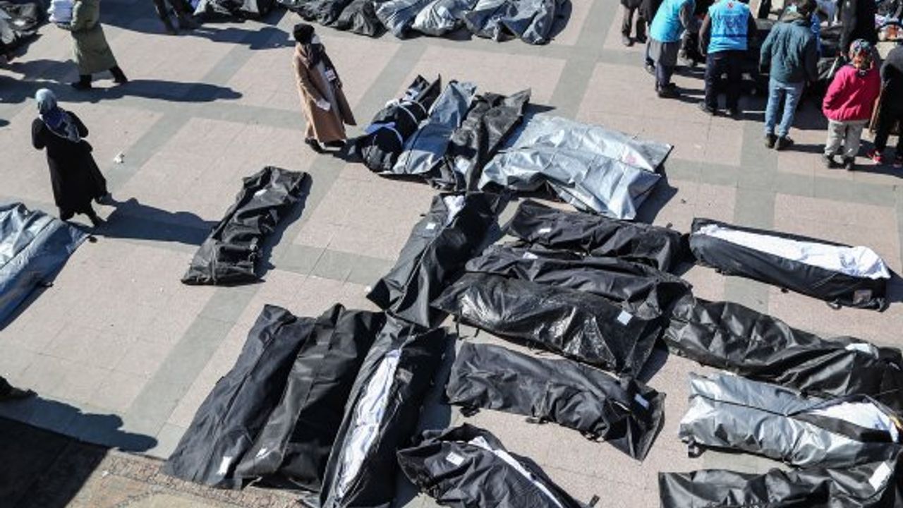 Depremin büyük yıkım yarattığı Hatay’da hayatını kaybedenlerin cansız bedenleri hastane bahçesinde bekletiliyor.<br />