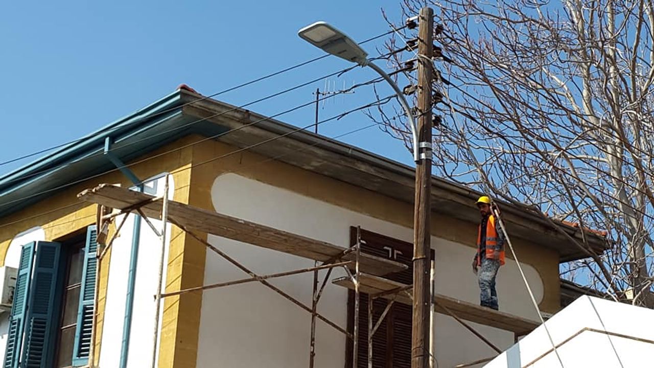 Fotoğrafta görüldüğü gibi bir inşaat işçisinin bir evin dış cephesiyle ilgili ya tamir ya da boyama işi için demir skaloşaların üzerinde çalıştığına dikkat çeken vatandaşlarımız, “Sadece kafasında bulunan miğfer ile acaba iş güvenliğinin olduğunu mu düşünüyor? Çalıştığı inşaatın etrafından geçen elektrik telleri kendisine o kadar yakın ki her an elektrik akımına tutulabilir. Ancak korkusuzca çalışmaya devam ediyor” dediler.