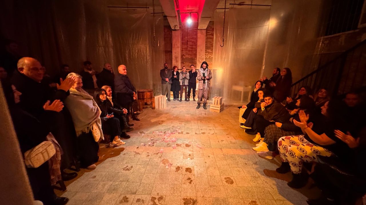 “Maskeliler”, İsrail-Filistin çatışmasının gölgesinde yaşanan yıkımları, üç kardeşin kimlik, aidiyet ve varoluş mücadelesi üzerinden sahneye taşıyor.
