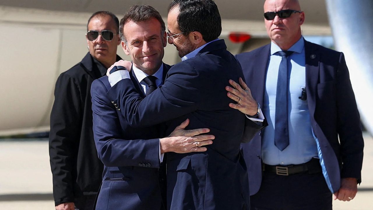 Fransa Cumhurbaşkanı Emmanuel Macron, Baf’taki Andreas Papandreou Hava Üssü’nde düzenlenen üçlü basın toplantısında, Kıbrıs’a yönelik bir saldırının Avrupa’ya yapılmış sayılacağını söyledi. Macron, Fransa’nın Akdeniz, Hürmüz Boğazı ve Kızıldeniz’deki varlığının 8 fırkateyn ve uçak gemisi ile devam edeceğini söyledi. Macron, Hristodulidis’e hitaben “Avrupa’nın güvenliği için yanınızdayız” dedi.
