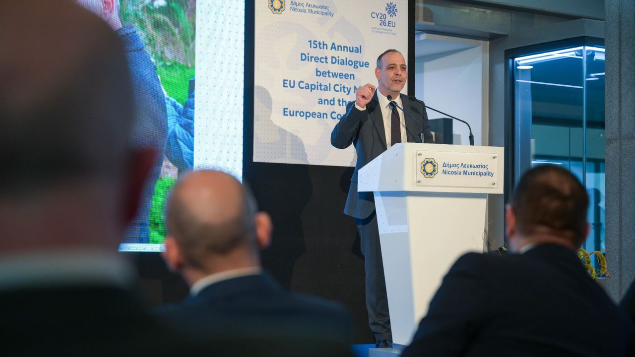 Lefkoşa Türk Belediyesi (LTB) Başkanı Mehmet Harmancı, Güney Lefkoşa Belediye Başkanı Charalambos Prountzos’un davetiyle katıldığı “15. AB Başkent Belediye Başkanları ile Avrupa Komisyonu Arasında Direkt Diyalog Zirvesi” kapsamında düzenlenen bir oturumda konuşma yaptı.
