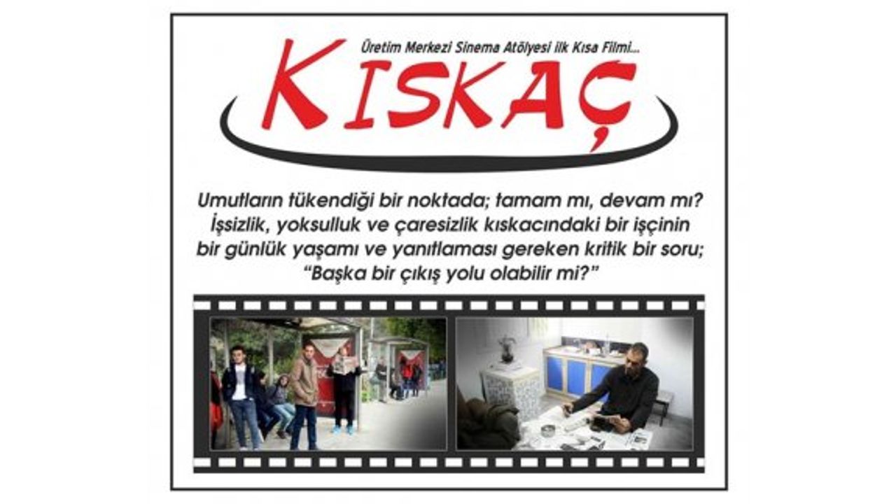 Üretim Sokağı Kültür Merkezi’nden yapılan açıklamada, çaresizlik içerisindeki bir işçinin yaşamını konu alan kısa film “Kıskaç”’ın senaryosunun, Üretim Merkezi Sinema Atölyesi tarafından kollektif bir şekilde yazıldığı belirtildi.