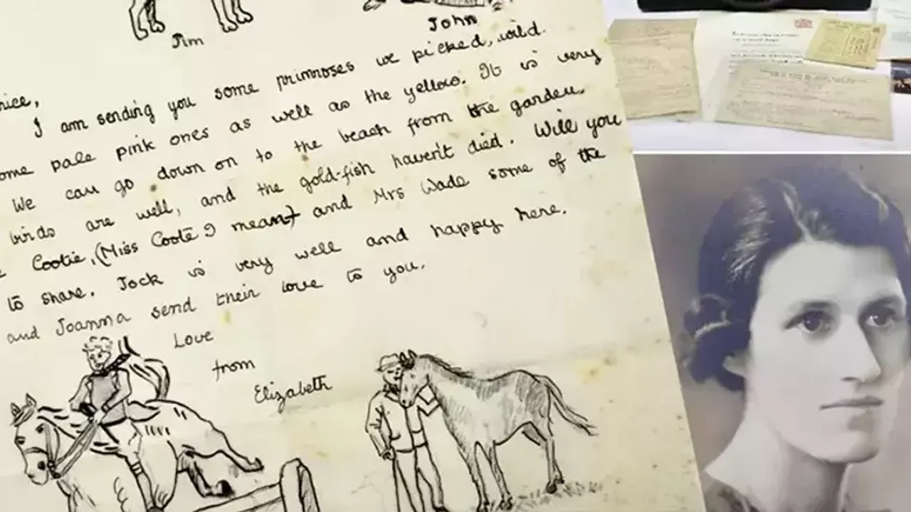 Windsor'daki kraliyet konutunun baş hizmetçisine hitaben yazılan tek sayfalık mektupta köpekler, atlar ve küçük çocukların çizimleri yer alırken Kraliçe kuşların iyi olup olmadığını ve akvaryum balıklarının hayatta olup olmadığını soruyor.