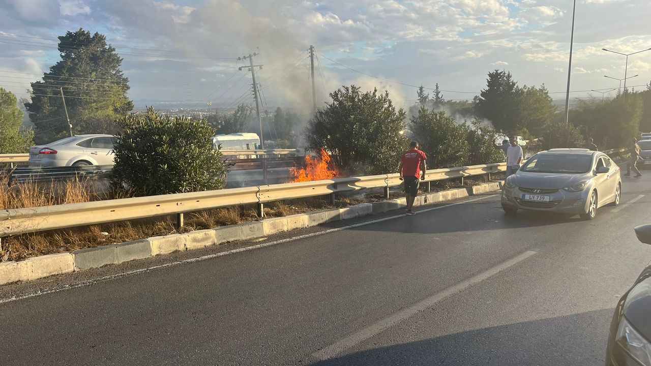 Yol ve trafik güvenliği açısından Boğazköy 'den Girne istikametine doğru seyreden sürücüler için trafik kontrollü olarak tek şeritten sağlanıyor. Orta refüj içerisinde meydana gelen yangına ise itfaiye ekipleri müdahale ediyor.