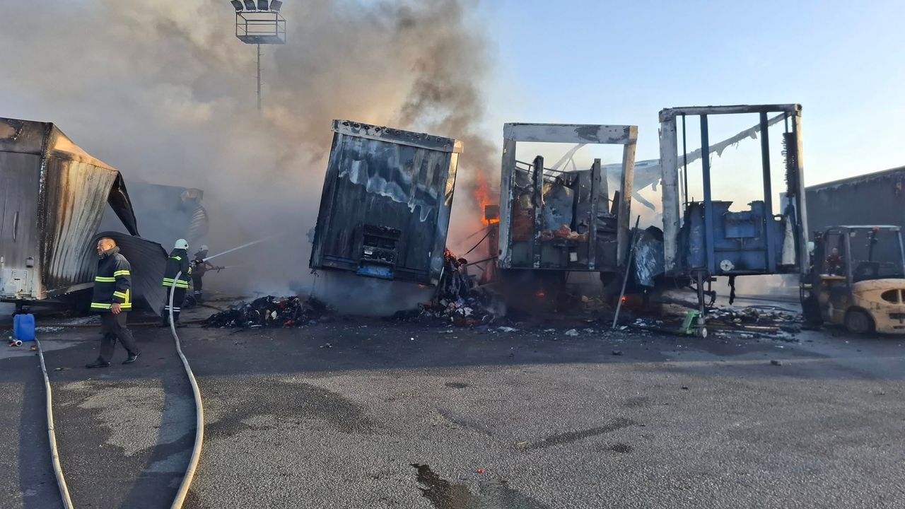 Lefkoşa Sanayi bölgesinde bulunan Gümrük ve Rüsumat Dairesi’ne ait araç park alanında çıkan yangında, malzeme yüklü dört tır dorsesi ve içerisindeki malzemeler yandı.