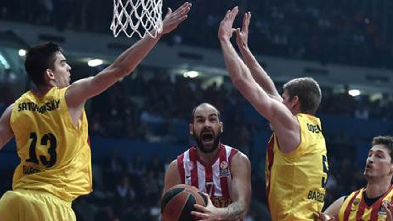 Başkent Atinada oynanan karşılaşmada ilk periyodu 26-23 önde geçen Yunan temsilcisi, devreye de 44-36 üstün girdi. Üçüncü çeyreği Barcelona 60-59 önde bitirmesine karşın, ev sahibi Olympiakos maçtan 73-71 galip ayrıldı. Karşılaşmada Olympiakostan Printezis 19 sayılık performansıyla maçın en skorer ismi oldu. Barcelonada ise 14 sayı üreten Navarro takımının en skorer ismi olurken, mağlubiyete engel olamadı.