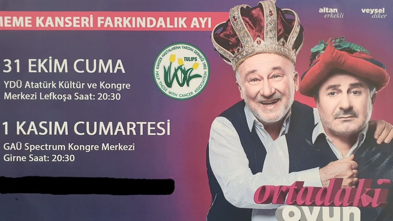 Dernekten yapılan açıklamaya göre, Meme Kanseri Farkındalık Ayı etkinlikleri kapsamında sahnelenecek oyun, 31 Ekim Cuma günü saat 20.30’da Lefkoşa Yakın Doğu Üniversitesi Atatürk Kültür ve Kongre Merkezi’nde, 1 Kasım Cumartesi günü saat 20.30’da Girne Amerikan Üniversitesi Spectrum Kongre Merkezi’nde seyirciyle buluşacak.