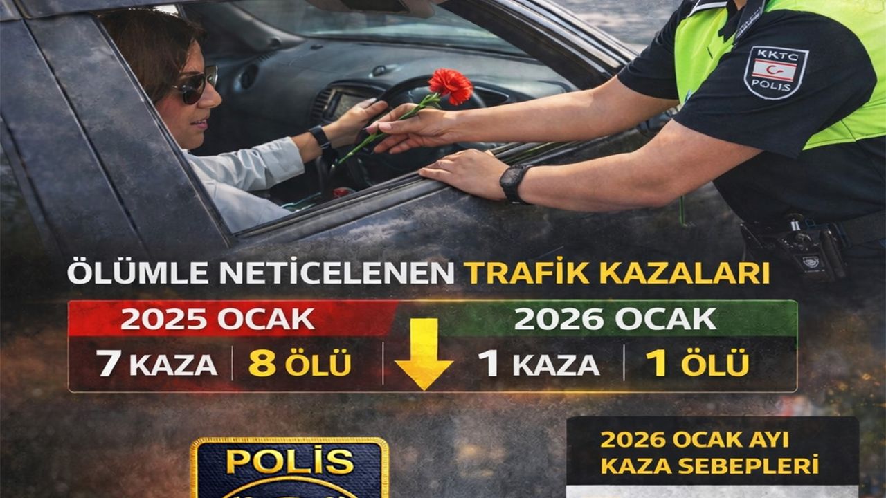 “Trafik Kurallarına Uyarak Sen De Güvenli Trafiğe Katkı Yap” ve “Birlikte Yapabiliriz” sloganıyla PGM’den yapılan açıklamada, trafikte güvenlik seviyesini artırmak amacıyla Polis Genel Müdürlüğü tarafından hayata geçirilen “toplum destekli polislik uygulamaları ve farkındalık çalışmaları” sonucunda, 2026 yılının Ocak ayında meydana gelen ölümlü trafik kaza sayısı ile yaşanan can kayıplarında, önceki yıla kıyasla belirgin bir düşüş sağlandığının görüldüğü kaydedildi.