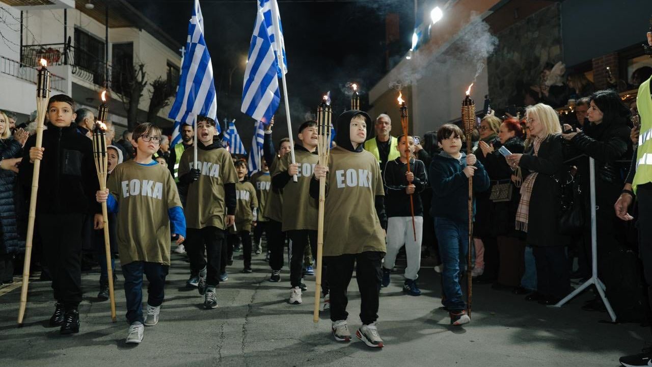 Güney Kıbrıs’ta terör örgütü EOKA’nın 1 Nisan kuruluş yıldönümüne 'savaş' sloganları atan çocuklar damga vurdu. Etkinliklerde Yunanistan ve Bizans bayrakları taşındı.