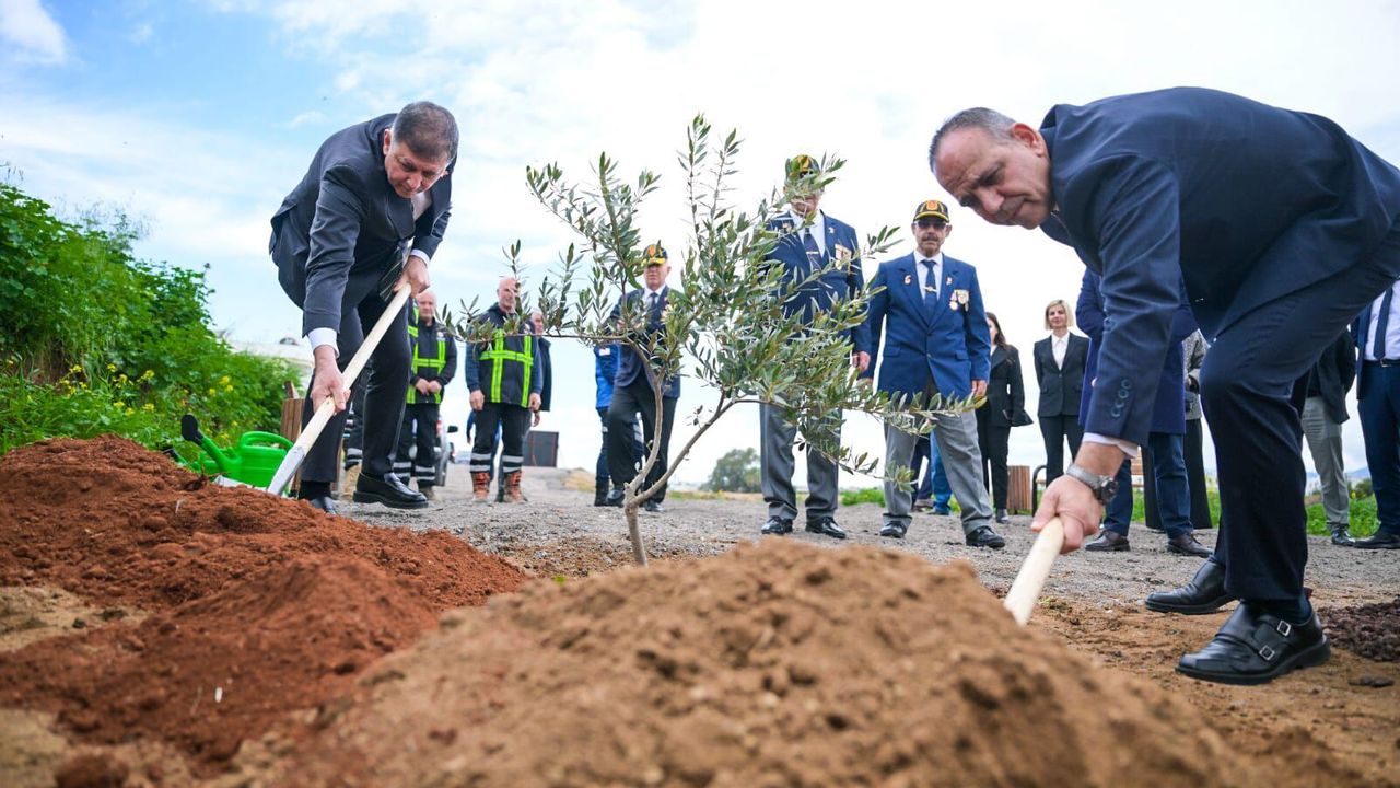 Ziyarette, LTB Başkan Harmancı, İzmirli mevkidaşına projeyle ilgili bilgi verirken, alana Cemil Tugay’ın Kıbrıs gazisi olan babası Cemal Tugay anısına da üç adet zeytin fidanı dikildi.