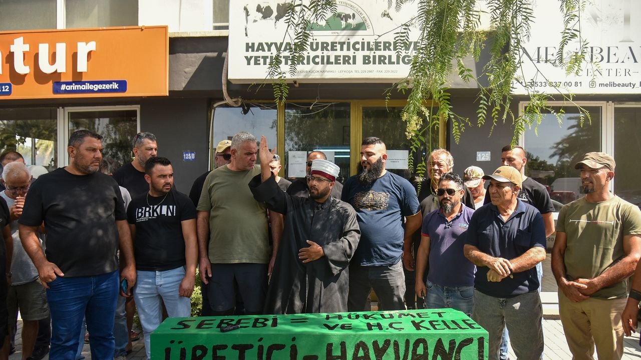 Hayvan Üreticileri ve Yetiştiricileri Birliği, üreticilerin yaşadıkları sıkıntılar nedeniyle dün Tarım ve Doğal Kaynaklar Bakanlığı önünde "tabutlu" eylem yaptı.