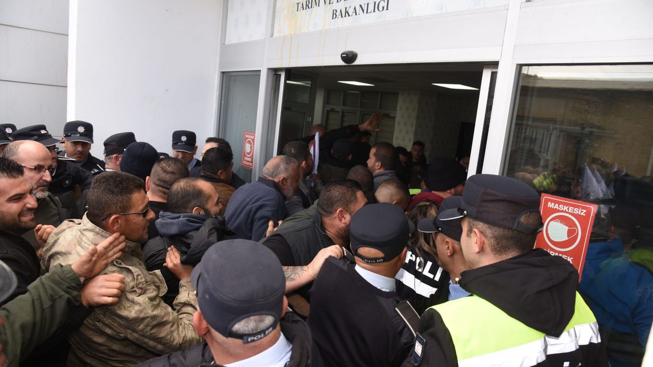 Hükümeti istifaya çağıran ve bakanlık binasına zorla giren eylemciler, Tarım ve Doğal Kaynaklar Bakanlığına yumurta attı, kapısına süt ve gübre bıraktı.