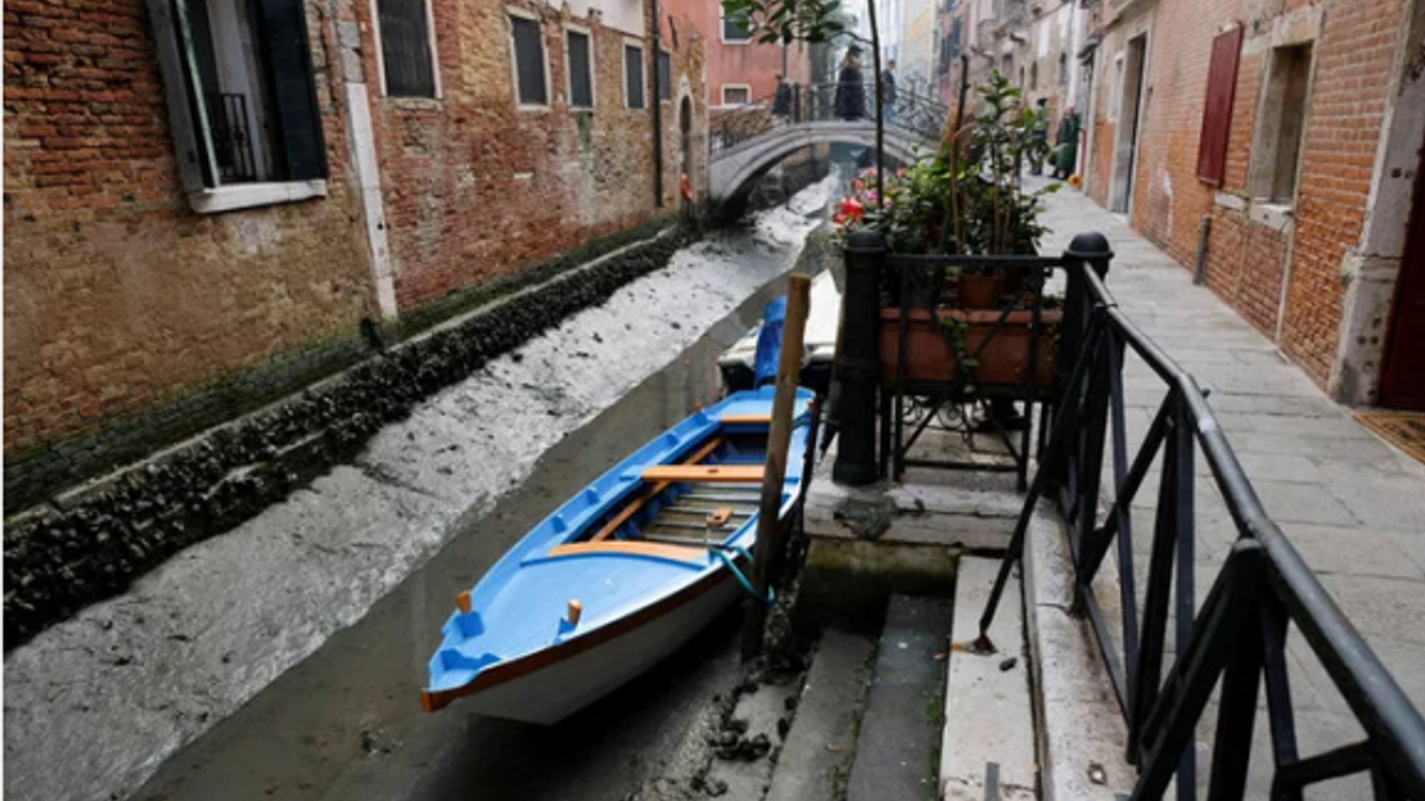 Bilim insanları ve çevreci grupların açıklamalarına göre, Alpler’in mevsim normallerinden daha az seyreden düzeyde kar yağışı alması nedeniyle geçen yaz kuraklık konusunda yaşanan acil durumdan sonra İtalya yeniden bir kuraklık tehdidiyle karşı karşıya kaldı. Kanallar kurmaya başlarken mevcut su seviyesi gondolların, deniz taksilerinin ve ambulansların şehrin bazı kısımlarına dolaşmasını imkansız hale getiriyor. Venedik’te yaşanan durum yağmur olmaması, yüksek basınç sistemi, dolunay ve deniz akıntıları gibi çeşitli faktörlerin birleşimine bağlanıyor.