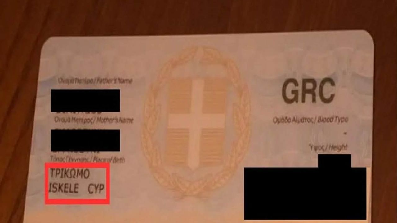 Kıbrıs Rum asıllı bir Yunan vatandaşının yeni çıkardığı kimliğine doğum yeri olarak KKTC'nin ilçesi 'İSKELE' yazılması kriz çıkardı.