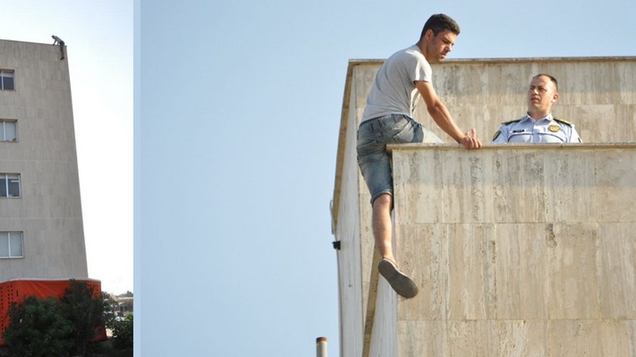Lefkoşa'da Çalışma Bakanlığı binasının çatısına çıkarak intihar etmek isteyen bir kişi yürekleri ağza getirdi